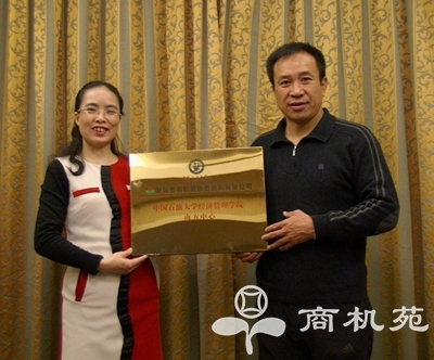 2013年12月20日,深圳市商机苑信息咨询有限公司由原来的“中国石油大学经济管理学院EDP南方中心”,正式被授权为“中国石油大学经济管理学院南方中心”,开拓更广的范围,承担更多的教育培训工作。中国石油大学经济管理学院常委书记李逸龙亲自授牌给商机苑公司总策划陈冬梅女士授牌。作为中国石油大学商机苑第一个分中心机构,商机苑将以润滑油行业发展需求为导向,整合石油大学教育资源,计划在明年开办EMBA核心课程班,帮助业内人士提高整体素质。消息一传开后,众多企业领导人跃跃欲试,纷纷来电祝贺并表达报名意愿! ------分隔线----------------------------